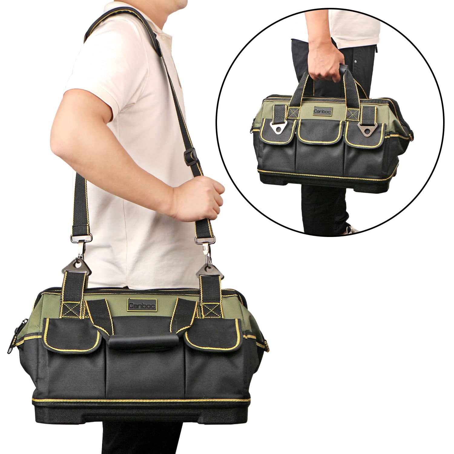 - 【Easy to Carry】- The tool bag comes with a shoulder strap and a soft padded handle, suitable for use in different work environments, easy to carry, and can effectively relieve hand fatigue and shoulder pressure.
