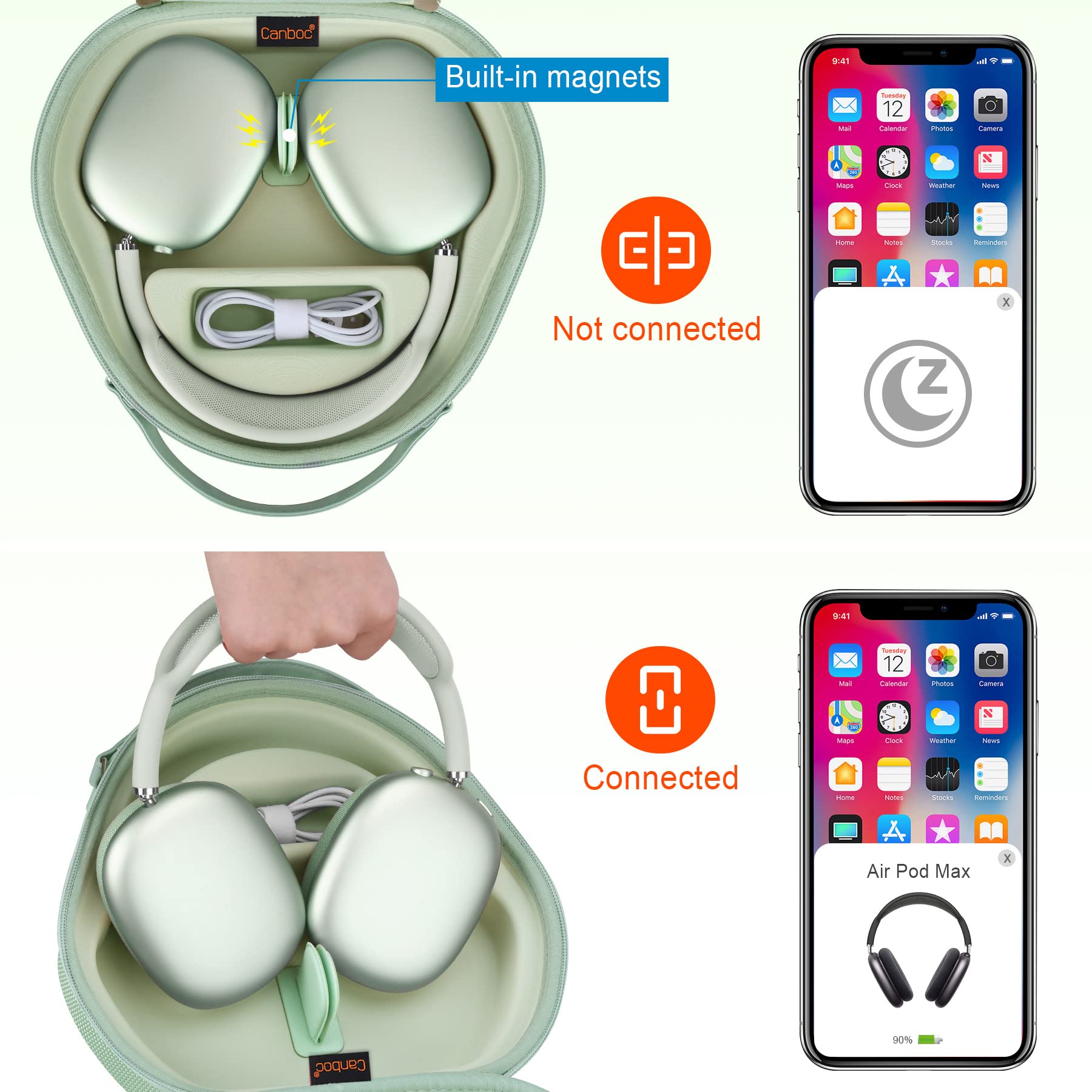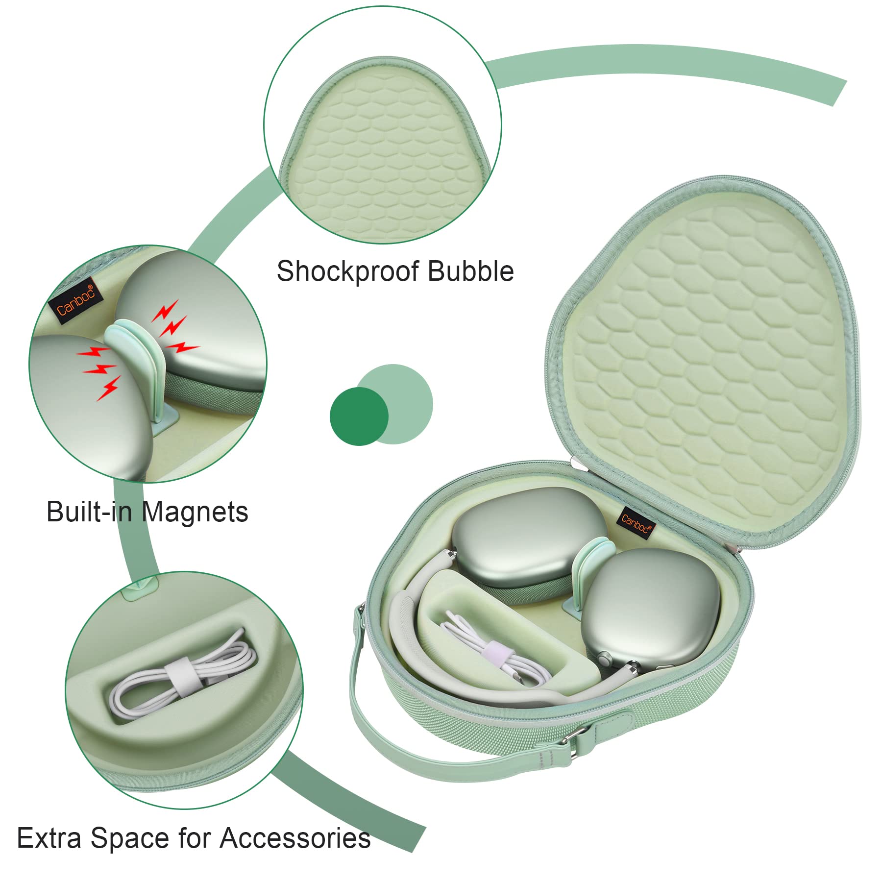 Hard travel carrying smart case replacement for Apple AirPods Max headphone supports sleep mode. The magnetic device in black mini pads allows the Airpods Max to enter the dormant state.