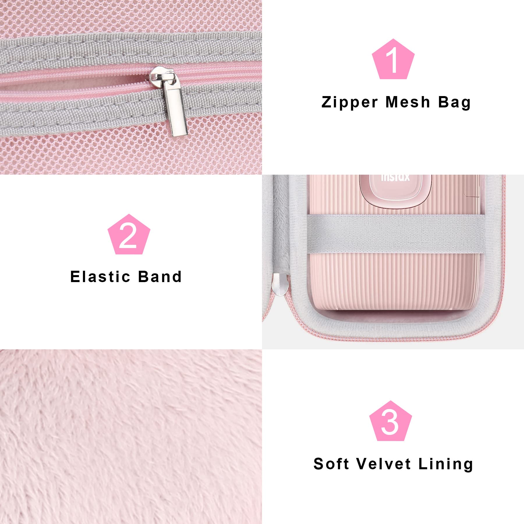 practical case is lightweight and compact yet big enough to store all your needs, and it won’t take up too much space in your backpack. It's much more streamlined for travel. So you can carry instax case with you anywhere you go, or leave it at home, or in your handbag.