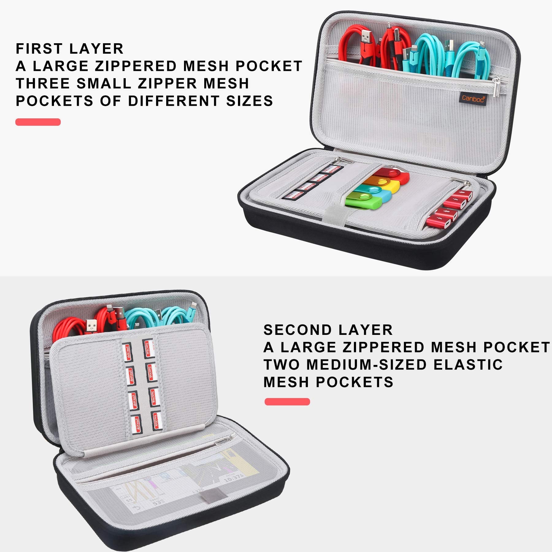 The design of multiple mesh bags meets all your storage needs, keep your items and other accessories away from tangling, and make your travel more convenient. There are two main compartments with zipper fit backup hard drive, macbook air pro charger, power adapters, portable battery bank, type c hub, usb multi ports type c hub, tablet chargers, small digital voice recorder, digital multimeter and other. Besides the main storage space, there are 3 zipper pockets and 2 elastic mesh pockets on the middle partition, which is very suitable for storing thumb drives, earphones, credit cards or other small items.